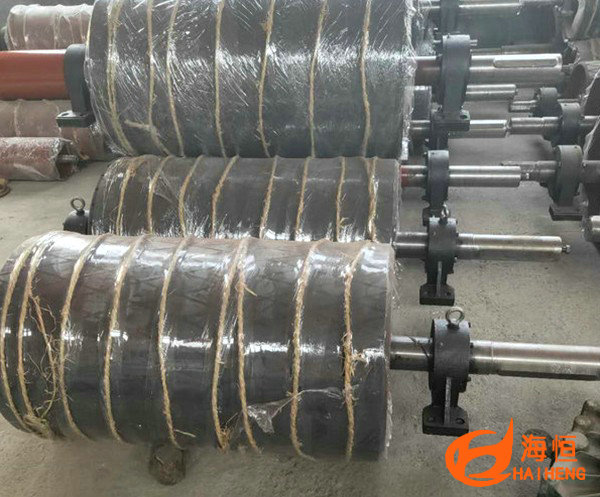 傳動滾筒表面可以裸露光鋼面,也可以附膠,如:人字形和菱形花紋橡膠覆面;小功率、小帶寬及環(huán)境干燥時可采用裸露光鋼面;人字形花紋膠面摩擦系數(shù)大,防滑性和排水性好,但有方向性;菱形膠面用于雙向運(yùn)行的皮帶輸送機(jī)。